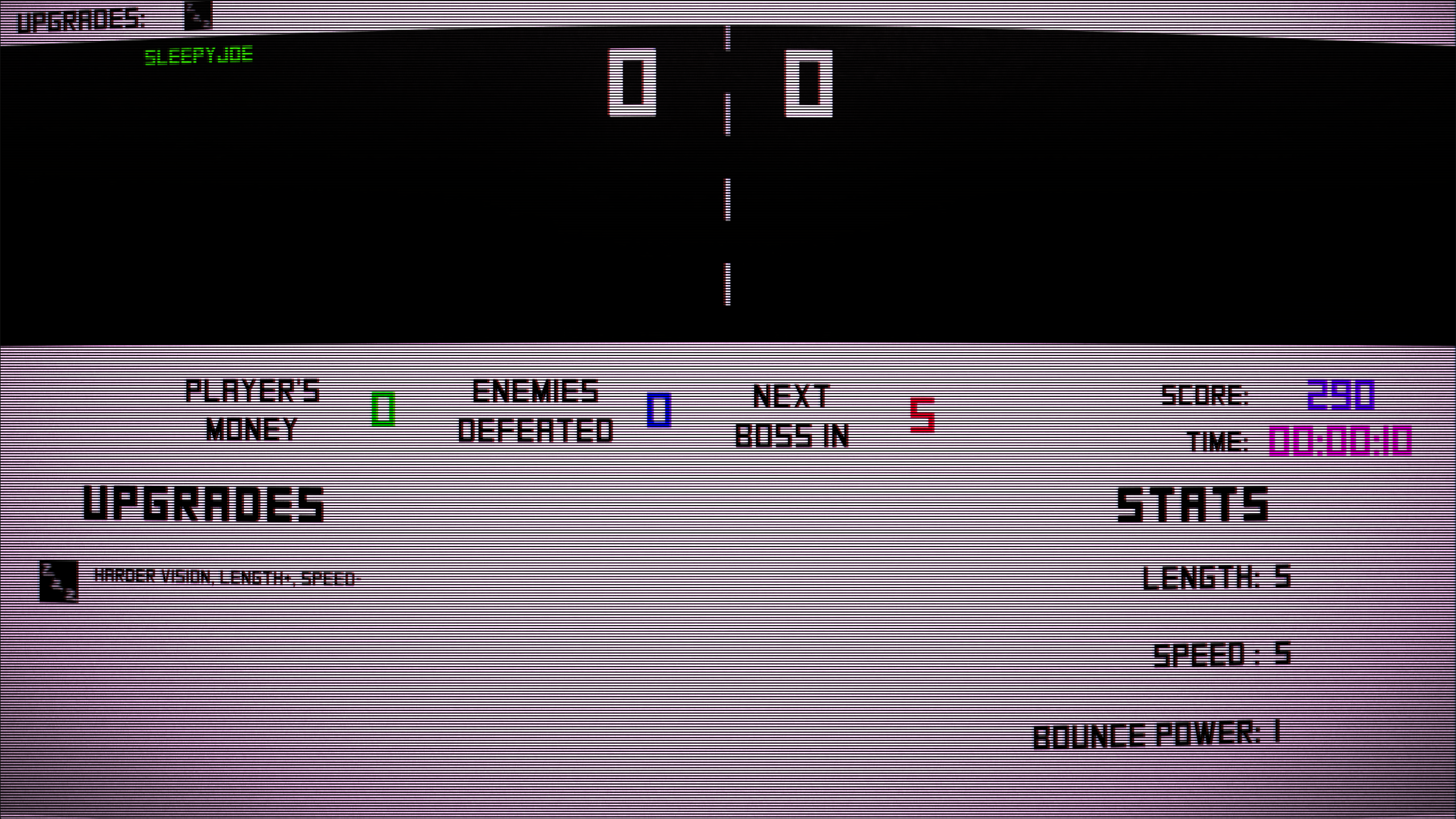 This and other elements, like purchased upgrades, player's money, defeated enemies, stages until next boss, timer and paddle stats can be accessed by displaying a menu using TAB. I've also added a fun fire effect when the ball reaches a high velocity.